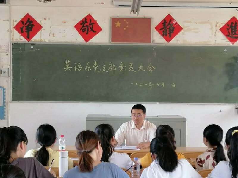 为进一步推进党员队伍建设,不断增强队伍的生机与活力,根据《中国共产党发展党员工作细则(试行)》等文件的有关精神,结合学校党委党建工作具体要求,2020年7月8日下午,英语系党支部在教学楼210教室召开预备党员转正大会。出席本次会议的有党支部书记程昭玉同志、14名党员教师及10名预备党员。此次会议由程昭玉同志主持。