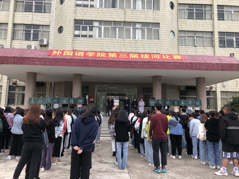 为迎接党的百年华诞,让同学们更好地学习党百年发展历程中团结奋斗、永不放弃、团结一心的奋斗精神,增强班级凝聚力,丰富同学们的课余生活。英语系党支部于2021年3月22—24日,在升旗台前举行以“迎党的百年华诞,展外院拔河精神”为主题的外国语学院第三届拨河比赛。