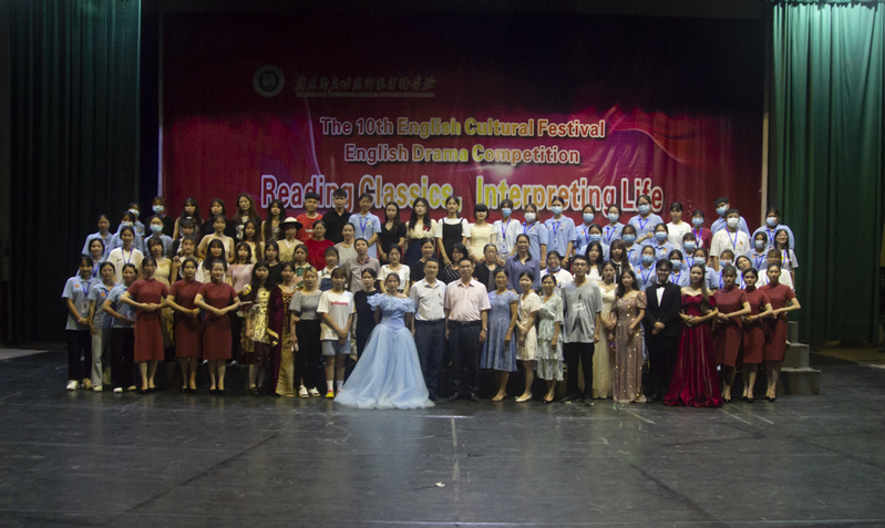 2021年6月7日19:00,由外国语学院承办的“Reading Classics, Interpreting Life”英文戏剧大赛在高州校区会堂隆重举行。学校党委书记林业强,外国语学院书记程昭玉,傅冰玲院长等领导老师到场观看比赛。专业教师柯丽、朱海迎、杨杰玲、卢彩尧、吴绍华、张坤仪出席并担任评委。本次大赛由李青藤和黄晓琳同学主持。