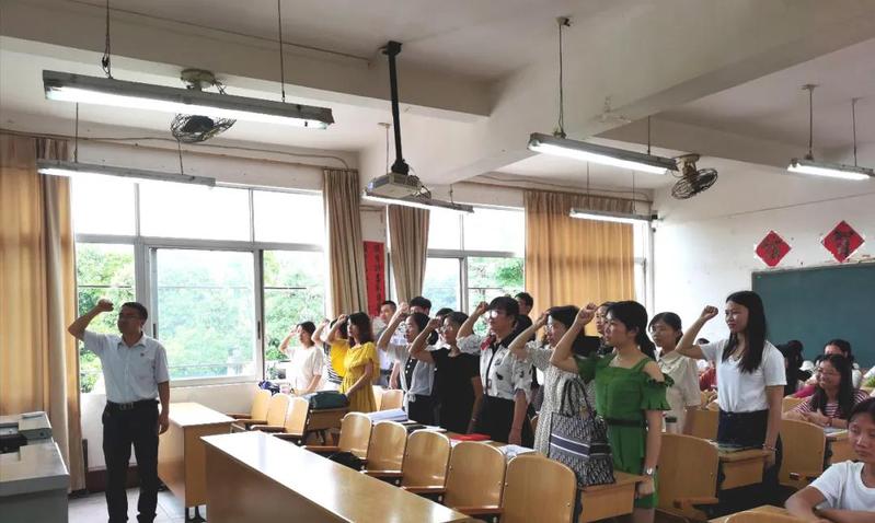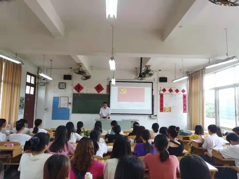 为进一步激发党员同志的爱国热情,坚定理想信念,牢记初心使命,增强责任感与使命感,提升党支部的凝聚力、向心力和战斗力,更好地献礼中国共产党100周年华诞,英语系党支部于2021年6月24日下午四点十分在教学楼210教室开展了“重温入党誓词、坚守初心使命”主题活动。学院党支部书记程昭玉同志,院长傅冰玲同志,22名党员教师及40名入党发展对象参加了本次活动,会议由程昭玉书记主持。