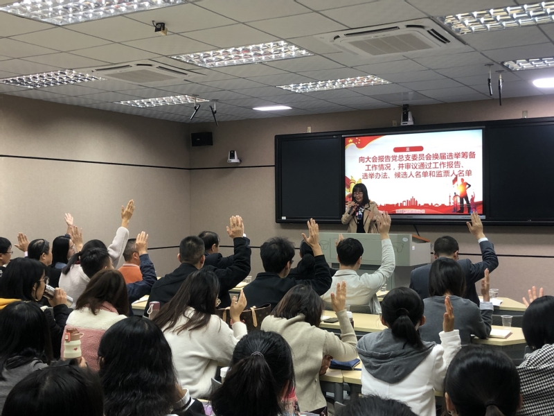 大会对报告进行了审议并表决后,主持人宣读了《外国语学院党总支党员大会选举办法(草案)》,听完后全体党员举手表决通过选举办法,宣读了上级党委关于外国语学院党总支委员会委员候选人的批复。由程昭玉同志宣读了党委关于我校基层党组织设置的文件精神和党委对外国语学院党总支开展选举工作及推荐新一届党总支支委人员的同意批复。