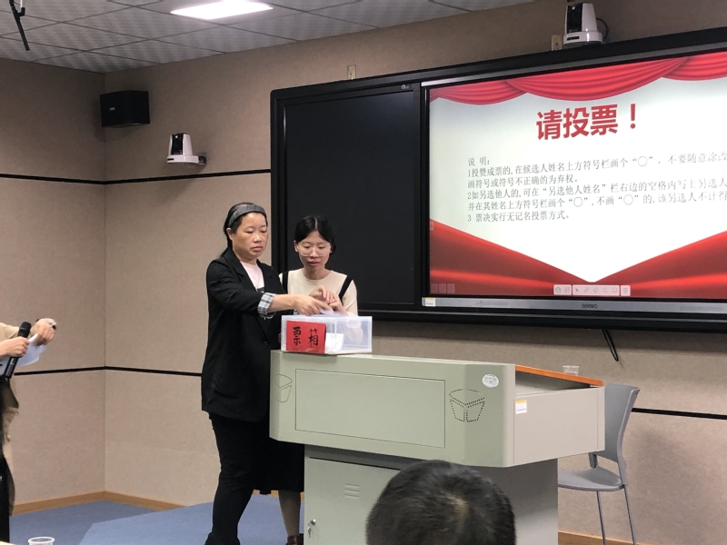 大会以举手表决方式通过产生了罗英杰、陈小丹为监票人,柯丽为计票人,同时监票人对投票箱进行检查并报告应到、实到人数情况,计票人统计有效票数以及发放选票,大会进行差额选举。与会正式党员通过无记名投票方式认真填写选票并依次上台进行投票。