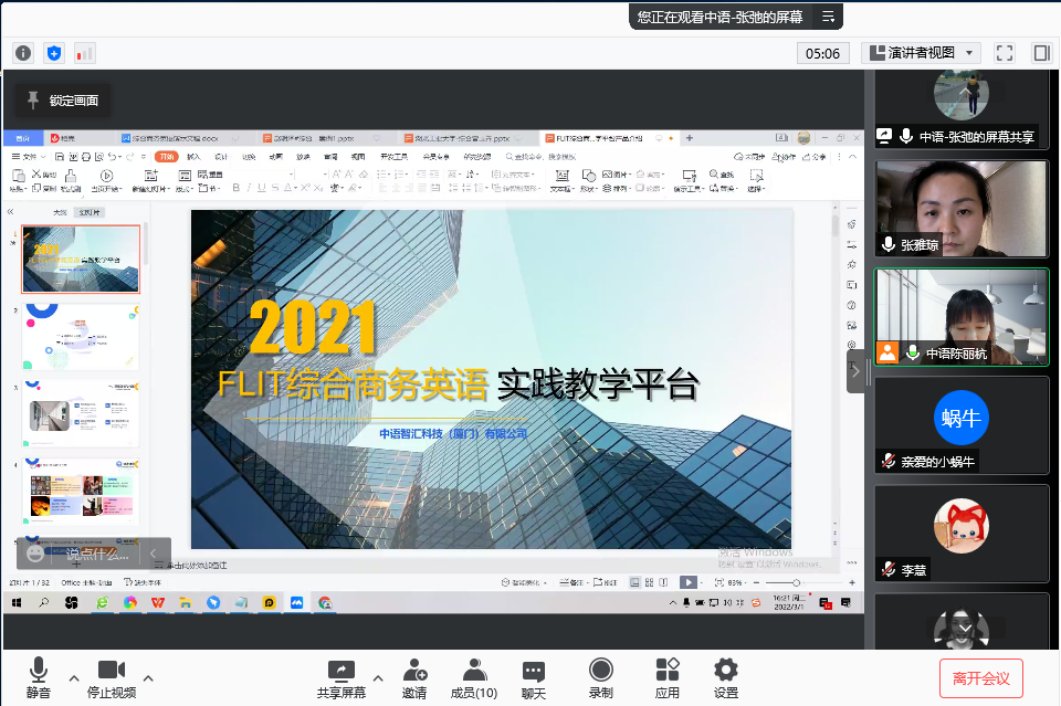 经过一个小时四十分钟的介绍,大家对中语智慧教学平台有了一个比较全面的认识,后续各位老师会通过试用账号再进行实际操作,如果觉得效果不错再考虑申请实训室或者升级语音室。