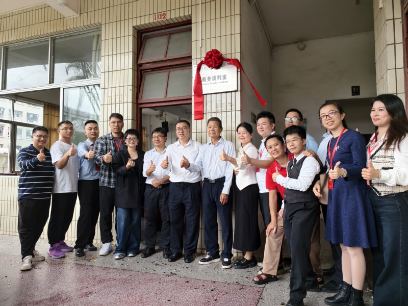 我院各届校友和在校师生自发捐资约50万元,建设了一个语音室和商务谈判室,还修缮了高州校区球场的灯光,用实际行动表达了对母校和学院的深厚感情。在11月8日下午,我们举办了语音室和商务谈判室的揭牌仪式。学校党委书记余义才,党委委员、副校长吴东,党委委员、副校长吴标,党委委员、宣传部部长王定康,我院党总支书记程昭玉、专职副书记梁任权,校友代表何嘉雄、龚小思、李康强等共同为语音室揭牌。程昭玉等学院领导和何嘉雄等校友代表为商务谈判室揭牌。随着覆盖在语音室和商务谈判室牌匾上的红绸被徐徐拉开,我院校友和教师共同捐建的两间教学功能室正式建成和投入使用,为我院人才培养增添了新的平台。